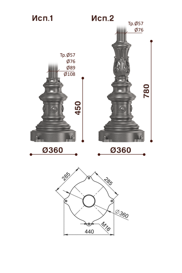 Чугунный цоколь применяется для защиты основания опор от излишней коррозии, продлевая их срок службы, а также как декоративный элемент