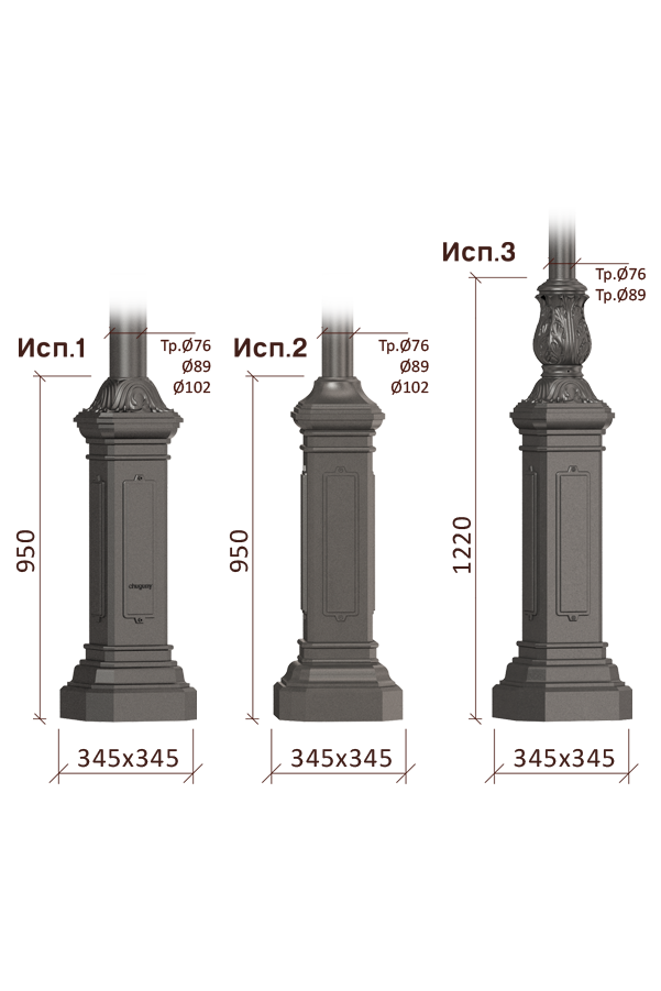 Чугунный цоколь применяется для защиты основания опор от излишней коррозии, продлевая их срок службы, а также как декоративный элемент
