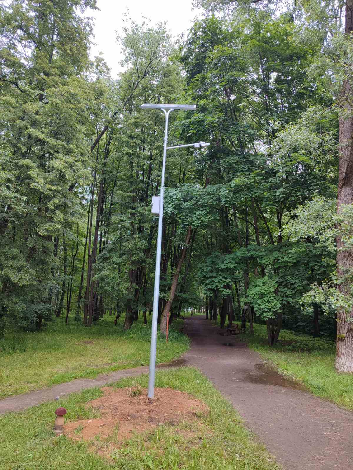 Стойки с солнечными панелями используются для освещения участков, расположенных вдали от электросетей