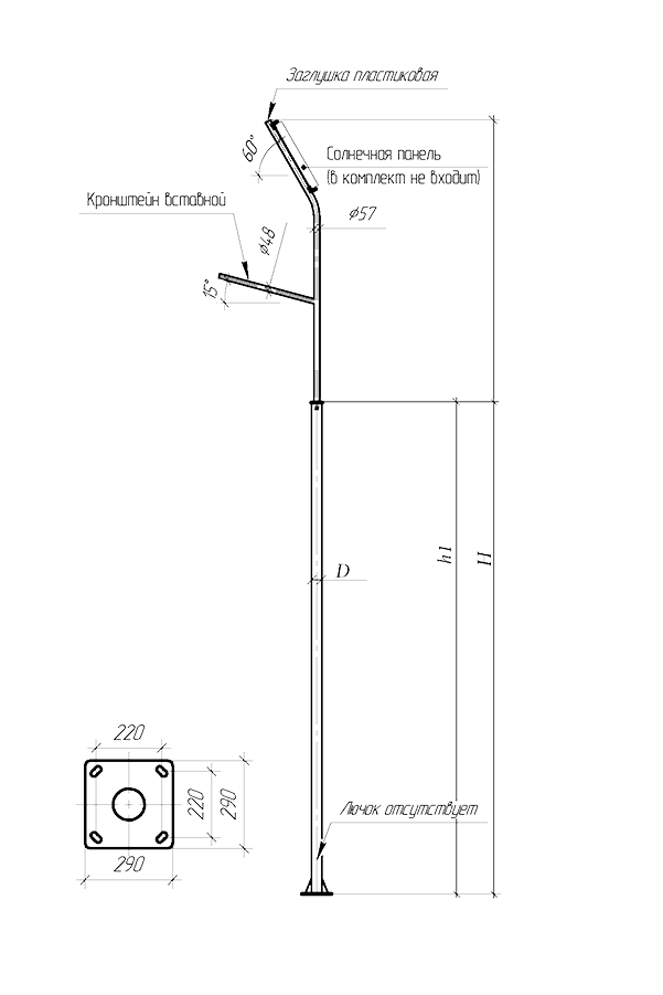 | Наименование | H, м | h, м | D, мм | Масса, кг | Модель фундамента |